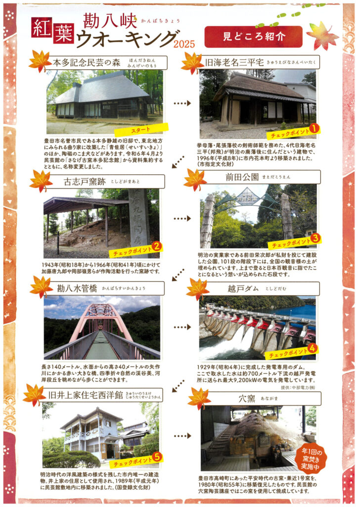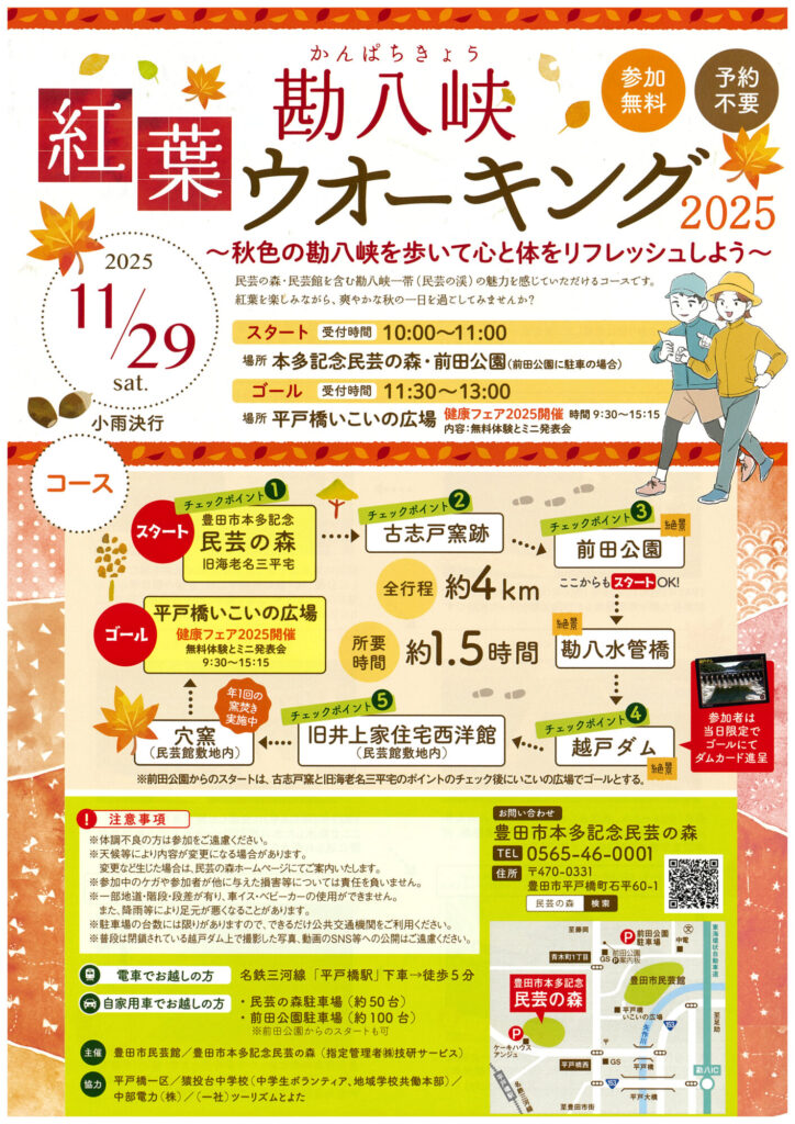 本多記念民芸の森から平戸橋いこいの広場までの約4キロのコースです。